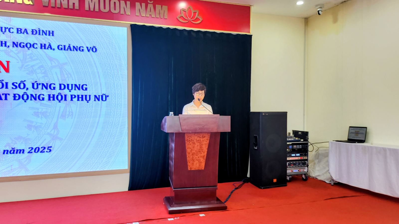 Phát biểu khai mạc, bà Nguyễn Tuyết Trinh - Chủ tịch Hội LHPN phường Ba Đình nhấn mạnh: "Trong bối cảnh cuộc Cách mạng công nghiệp lần thứ tư đang diễn ra mạnh mẽ, việc trang bị kỹ năng số cho cán bộ, hội viên phụ nữ không chỉ là yêu cầu cấp thiết mà còn là bước đi chiến lược. Buổi tập huấn hôm nay là cơ hội quý báu để chúng ta tiếp cận những công cụ AI hiện đại, từ đó tối ưu hóa công tác Hội, tiết kiệm thời gian, công sức và nâng cao hiệu quả truyền thông, lan tỏa sâu rộng hơn nữa các hoạt động ý nghĩa đến cộng đồng."