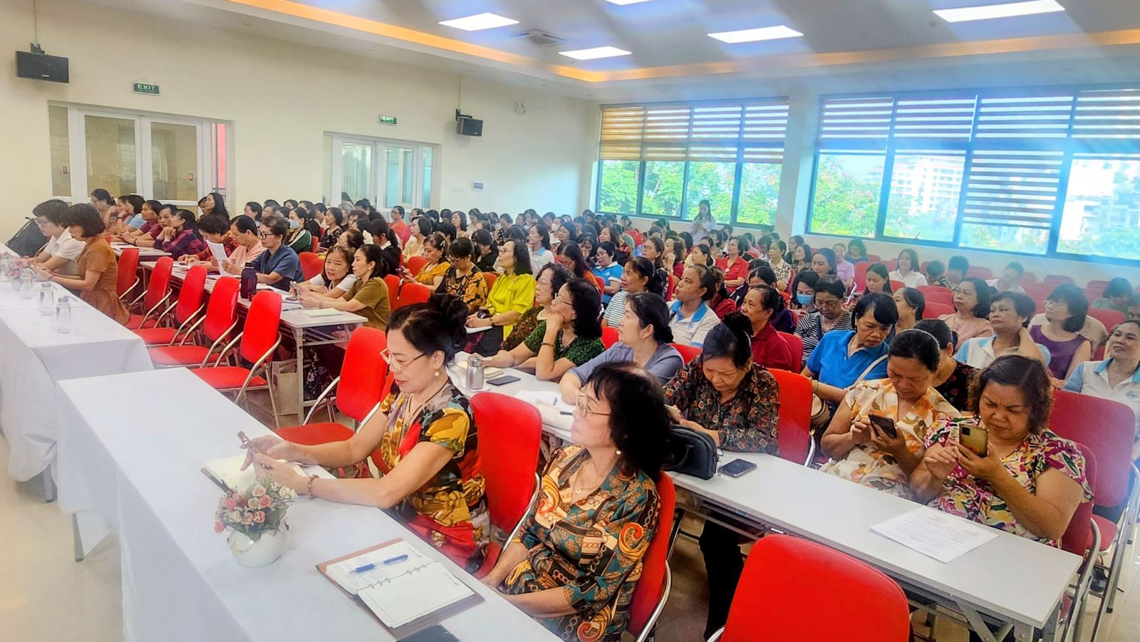 Các cán bộ, hội viên chăm chú lắng nghe những kiến thức bổ ích được chia sẻ.