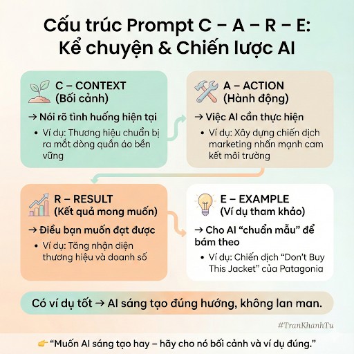 Cấu trúc CARE là chìa khóa để AI sáng tạo đúng hướng, đặc biệt hiệu quả trong marketing và nội dung. Nguồn ảnh: Trần Khánh Tư.
