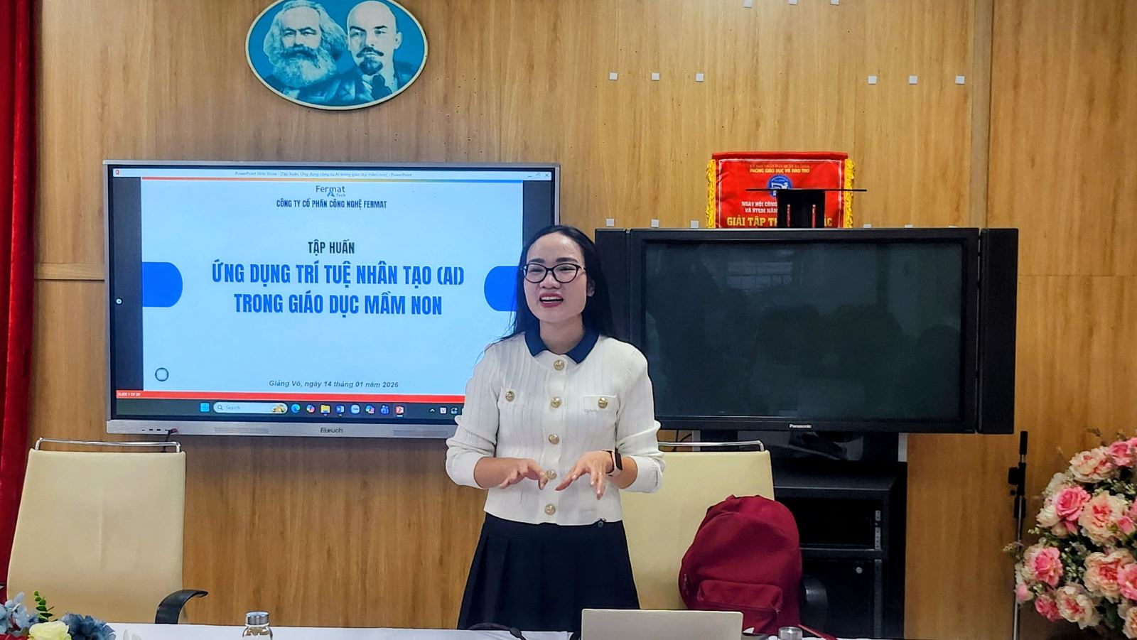Tại buổi tập huấn, bà Ngô Thị Liên – Chuyên gia đào tạo ứng dụng AI của Fermat Tech đã trực tiếp hướng dẫn giáo viên làm chủ mô hình RTF-C (Role – Task – Format – Context). Đây được xem là "chìa khóa vàng" để tạo ra các câu lệnh (prompt) chất lượng cao. Thay vì những câu lệnh chung chung, giáo viên đã học cách thiết lập vai trò cụ thể cho AI, xác định nhiệm vụ rõ ràng và định dạng đầu ra phù hợp với chương trình giáo dục mầm non hiện hành.