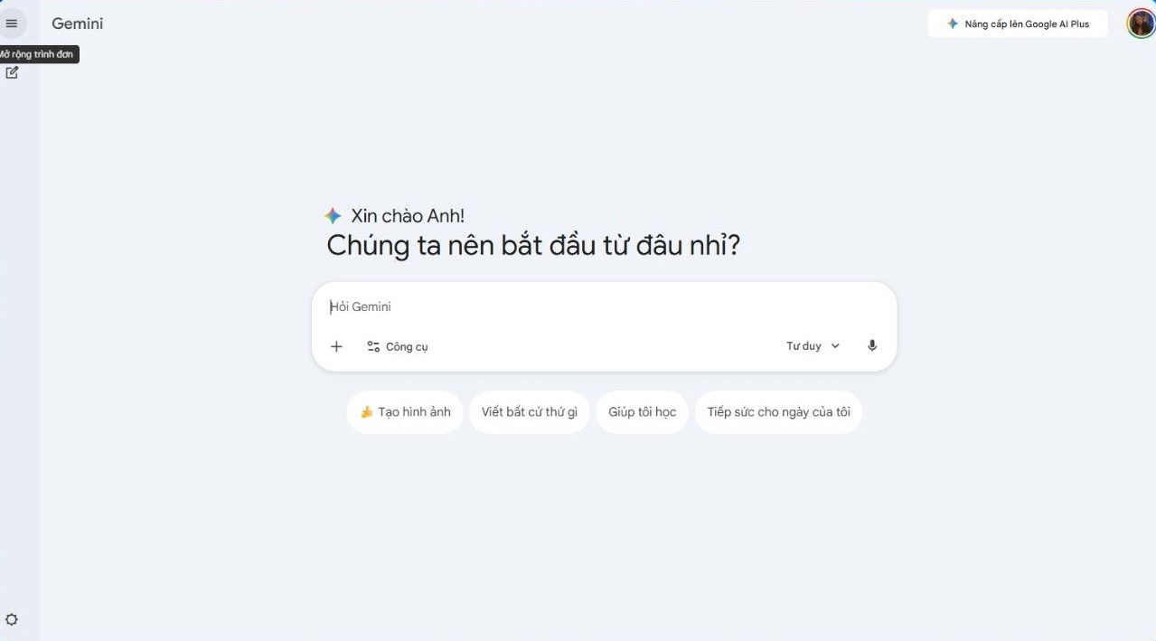 Giáo viên truy cập vào nền tảng Gemini thông qua tài khoản Google cá nhân. Giao diện tối giản của AI cho phép người dùng bắt đầu ngay lập tức mà không cần cài đặt phần mềm phức tạp.