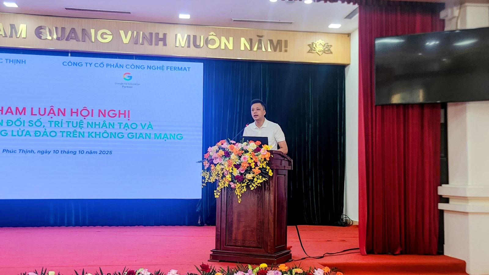 Sáng ngày 10/10/2025, hưởng ứng Ngày Chuyển đổi số quốc gia, UBND xã Phúc Thịnh phối hợp cùng Công ty Cổ phần Công nghệ Fermat (Fermat Tech) đã long trọng tổ chức Hội nghị "Chuyển đổi số, Trí tuệ nhân tạo và phòng chống lừa đảo trên không gian mạng". Sự kiện quy tụ đông đảo đại biểu là đại diện lãnh đạo xã, các ban ngành, đoàn thể, cùng Ban Giám hiệu và đội ngũ giáo viên cốt cán các trường trên địa bàn, đánh dấu một bước đi chiến lược trong việc nâng cao năng lực số và kiến tạo môi trường giáo dục thông minh, an toàn.